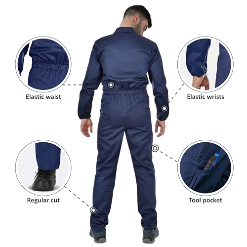 | Features | 100% BAUMWOLLE ZUSAMMENSETZUNG: Leichtes, atmungsaktives Material und sehr langlebig; Es ist eine wahre Freude, auch an heißen Sommertagen mit diesem Overall zu arbeiten., TASCHEN: 2 Oberseite mit einer Knopfabdeckung bedeckt. 2 vorne, hinten und Instrument., FARBEN UND DEKORATIONEN: Ganz dunkelblau mit braunen Kontrastnähten. Die Arbeitsoveralls haben einen elastischen Gürtel und einen elastischen Saum an den Ärmeln. Reißverschluss., ARBEITSOVERALL HERREN ANAX – eignet sich für die aktive Nutzung durch Fachleute in verschiedenen Branchen., GEEIGNET FÜR JAHRESZEITEN: Frühling, Sommer und Herbst. Ideal für Arbeiten in der Hitze, aber auch für kühlere und sogar regnerische Sommertage. |