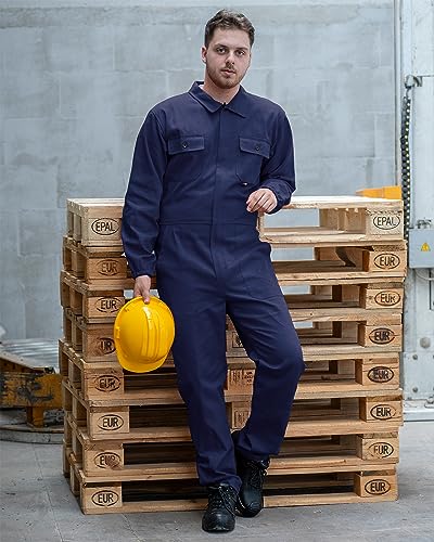 BWOLF ANAX Arbeitsoverall Herren Overall Herren Arbeitskleidung 100% Baumwolle Arbeitsoveralls mit 5 Taschen (Blau, XL)