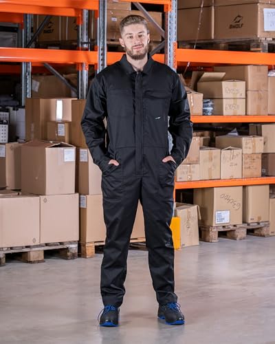 BWOLF Bravo Arbeitsoverall Herren Overall Herren Arbeitsoveralls Herren Arbeitskleidung mit Reißverschluss und 6 Taschen (Schwarz, XL)