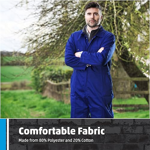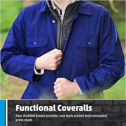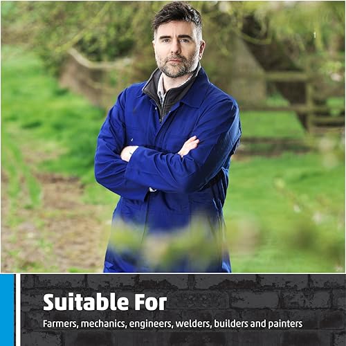 | Features | Workforce Overall – Die Workforce Overalls sind aus einem bequemen Stoff aus 80 % Polyester und 20 % Baumwolle. Unsere Herren-Overalls verfügen über zwei Brusttaschen mit Nieten und eine Gesäßtasche, sowie verdeckte Druckknöpfe. (Farbe: Marineblau, Größe: Klein.), Geeignet für: Unsere strapazierfähigen Overalls sind geeignet für diejenigen, die in Handarbeit arbeiten, einschließlich Landwirte, Eisenbahnarbeiter, Mechaniker, Ingenieure, Schweißer, Bauarbeiter und Maler. Bitte beachten Sie – diese Arbeitsoveralls sind so konzipiert, dass sie über Kleidungsstücken getragen werden können., Größenbereich – Die Workforce Overalls sind sowohl in Marineblau als auch in Königsblau sowie in einer Vielzahl von verschiedenen Größen erhältlich, einschließlich S, M, L, XL und 2 XL. Die Größe basiert auf der Brustgröße., Auch erhältlich – Wir haben eine Vielzahl von Arbeitskleidung erhältlich, einschließlich Warnwesten und Jacken, Sweatshirts und Hosen Alle unsere Kleidung ist in verschiedenen Größen erhältlich, von Größe S – XXL sowie verschiedenen Farboptionen, damit Sie finden, was am besten zu Ihnen passt., FORT – Fort ist eine Marke von Castle Clothing die für Sie entwickelt wurde. Wir haben ein umfangreiches Sortiment an Bekleidung und Sicherheitsschuhen, die speziell von Castle Clothing entwickelt wurden, um Ihnen Qualität, Haltbarkeit und ein außergewöhnliches Preis-Leistungs-Verhältnis zu bieten. |