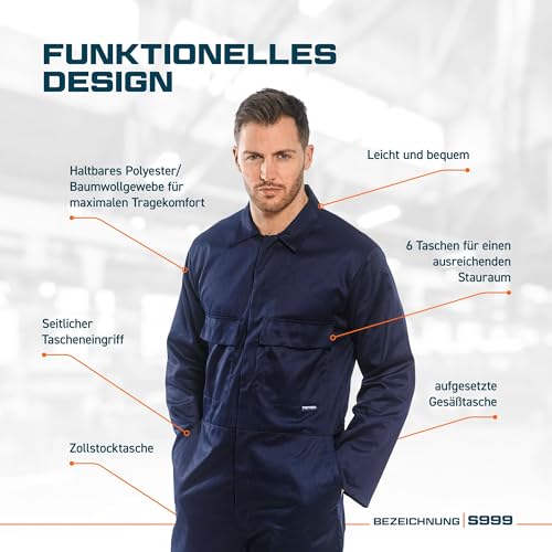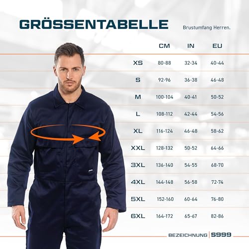Portwest S999 Herren Euro-Arbeitskleidung Polycotton Overall Arbeitsanzug Navy, XXXL