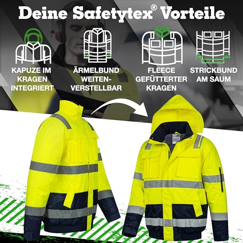 Die Safetytex Warnschutz Pilotenjacke bietet höchste Sichtbarkeit und sicheren Schutz bei Wind und Wetter. Mit wasserdichtem Material, bequemen Taschen und strapazierfähiger Qualität bist du bestens ausgestattet für deinen Arbeitsalltag.
