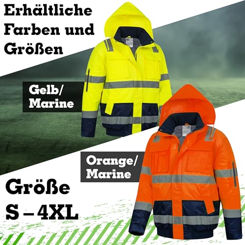 Safetytex Warnschutz Pilotenjacke – Arbeitsjacke – wasserdicht, winddicht, reflektierend – HI VIZ Thermo Jacke – Warnschutzjacke in gelb/marine – Gr. XXL
