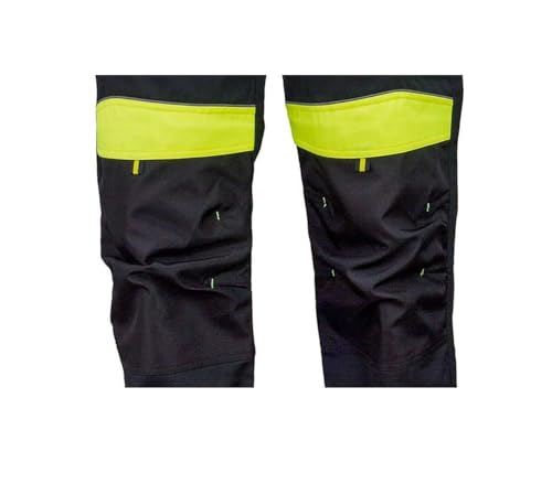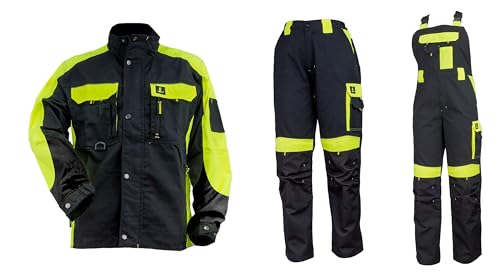 - Farben: Schwarz mit leuchtenden gelben Einsätzen für bessere Sichtbarkeit während der Arbeit