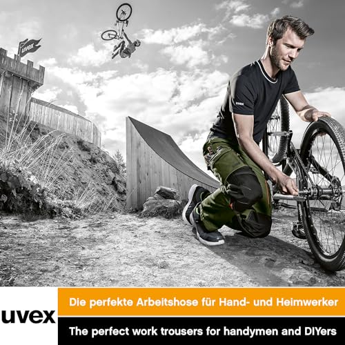 | Features | 🛠️ Unsere uvex tune-up Herren-Arbeitshosen sind strapazierfähig und bieten jede Menge praktische Features für die Arbeit, 🦵🏻 In den mit CORDURA verstärkten Knie-Taschen lassen sich die separat erhältlichen uvex Multipad Kniepolster einsetzen, 👛 Rechts sind Taschen für Stifte, Zollstock und Cutter zu finden, und links drei weitere große Fächer, z.B. für Smartphone, 💪 Die Oberschenkel-Taschen, Seitentaschen, Kniepolster-Taschen und die Rückseite des Hosenbunds sind mit CORDURA verstärkt, 👷🏻 In der Tabelle unten sind alle weiteren Arbeitskleidungs-Artikel der uvex tune-up-Kollektion aufgelistet |