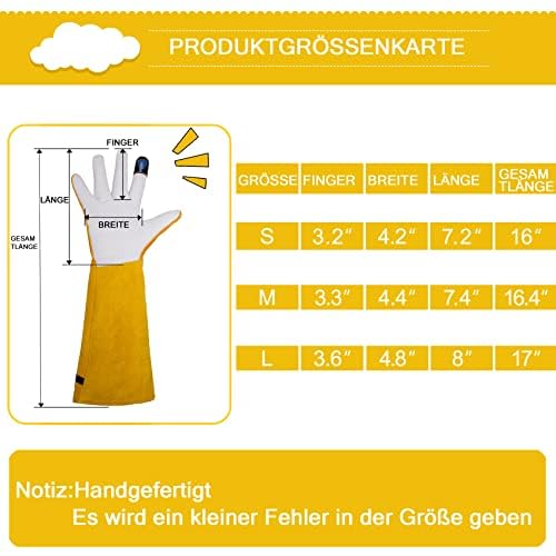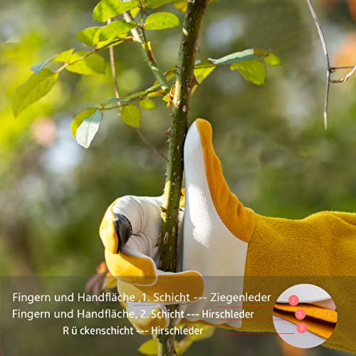 | Features | MATERIAL: Dieser Lederhandschuh besteht aus Zähes Ziegenleder und Weiches Hirschleder (Hinweis: Es ist normal, dass neue Handschuhe nach leder riechen. Es wird empfohlen, sie nach der Belüftung zu verwenden), ABRIEBFEST UND PANNENSICHER: Dieser Garten handschuhe Unterarmschutz Die Ärmel können auch mit Kordeln verstellt werden einer zusätzlichen Schicht Hirschleder an Fingern und Handfläche, TOUCHSCREEN: Fingerspitzen ermöglicht eine präzise Bedienung von Touch-Bildschirmen jeglicher Art., PRAKTISCHE GARTENHANDSCHUHE: Unsere Leder Gartenhandschuhe können zum Beschneiden oder Pflanzen von Gartenkakteen, Rosen, Brombeeren, stacheligen Sträuchern und anderen stacheligen Pflanzen verwendet werden und sind auch intime Geschenke für Freunde und Verwandte, Arbeitshandschuhefabrik: Als Handschuhefabrik über 30 Jahre kontrollieren wir den gesamten Prozess einschließlich Lederauswahl, Schneiden, Nähen und Verpacken, um hochwertige Handschuhe zu gewährleisten, die wir zur Verfügung stellen |