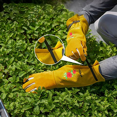 FEISHDEK Gartenhandschuhe Damen, Rosenhandschuhe Dornenfest mit Touchscreen und Stichfeste, Lang Leder Arbeitshandschuhe mit Rundumschutz vor Dornen für Gartenarbeiten
