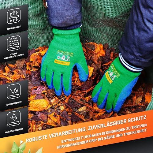 GRÜNTEK Winter-Schutzhandschuhe mit Thermo-Futter: Wasserdichte Garten- und Arbeitshandschuhe für optimalen Kälte-Schutz und Arbeitsschutz, Innenfutter, Latex