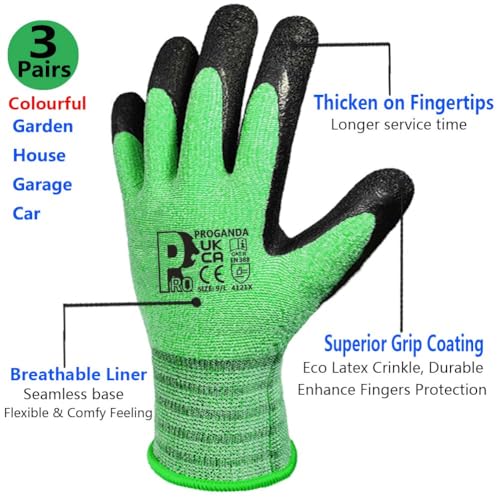 PROGANDA 3 Paar Gartenhandschuhe für Damen Herren Latex beschichtet Arbeitshandschuhe Griff Atmungsaktiv Bequem für Mehrzweck