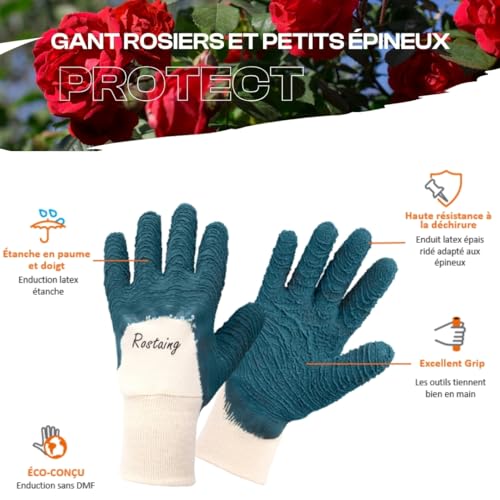 ROSTAING Handschuhe PROTECT – Latex-Handschuhe für die gemischte Gartenarbeit Rosen und kleine Dornen – Wasserdichter Schutz – Ideal zum Schneiden von Dornen – Schutzhandschuhe – Grün Blau