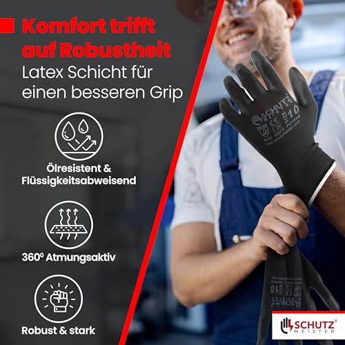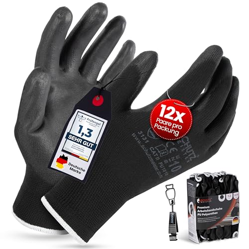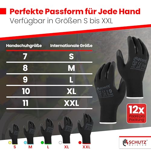 schutzmeister® 12 Paar Premium PU Arbeitshandschuhe, Größe 7/S – 11/XXL – atmungsaktiv, starker Grip, feines Tastgefühl, Montage, Garten-Handschuhe, Sicherheitshandschuhe – Herren, Damen, Mechaniker