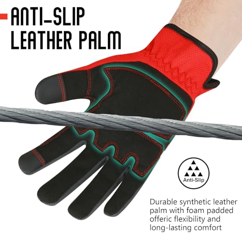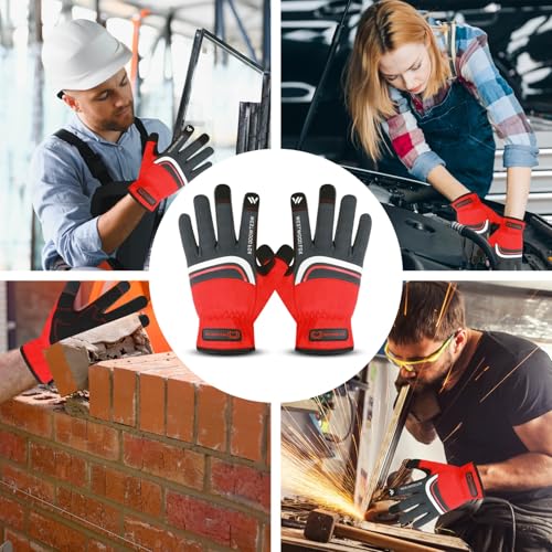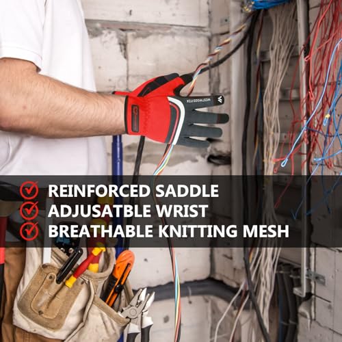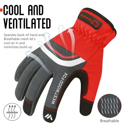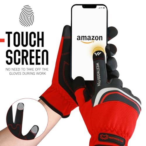 WESTWOOD FOX Gartenhandschuhe aus Leder,robuste Arbeitshandschuhe für Damen und Herren, Gartenwerkzeuge, Mechaniker, atmungsaktiv, Gärtner, rutschfeste Rigger-Handschuhe (Schwarz-Rot, L)