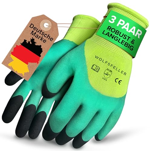 WOLFSFELLER 3 Paar robuste & komfortable Gartenhandschuhe Damen & Gartenhandschuhe Herren Gr 8 – Handschuhe Garten Handschuhe – Gardening gloves mit doppelt beschichteten Fingerspitzen