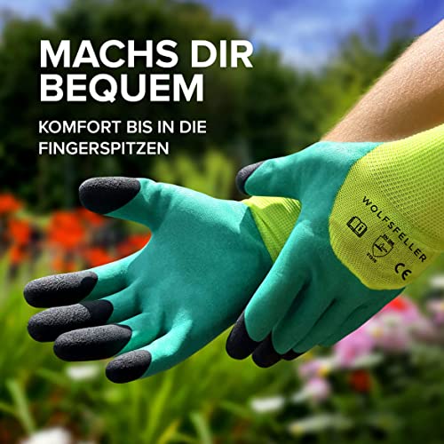 | Features | KOMFORTABEL – Unsere Garten Arbeitshandschuhe sind super bequem und passen sich deiner Hand an. Die idealen Gartenhandschuhe für Damen L., GRIP OHNE ENDE – Durch das besondere Latex-Profil der Gartenhandschuhe Set hast du eine Griffigkeit wie noch nie zuvor! Gartenhandschuhe Größe 9., UNSER VERSPRECHEN – Was wir versprechen, halten wir auch! Solltest du aus irgendeinem Grund nicht zufrieden mit unseren Garten Krallen Handschuhe sein, erhältst Du dein Geld zurück., STRAPAZIERFÄHIG – Die Gartenhandschuhe gummiert von WOLFSFELLER sind ein wahres Naturtalent was Robustheit betrifft! Perfekt als robuste Handschuhe für den Garten., VIEL FEINGEFÜHL – Dünne Gartenhandschuhe sind selbst bei den kleinsten Steinchen einsetzbar! Der ideale Garten Handschuh Größe 9. |