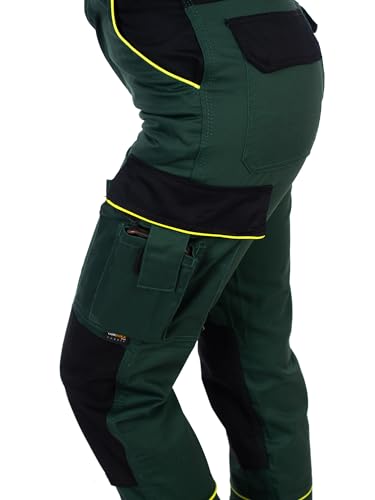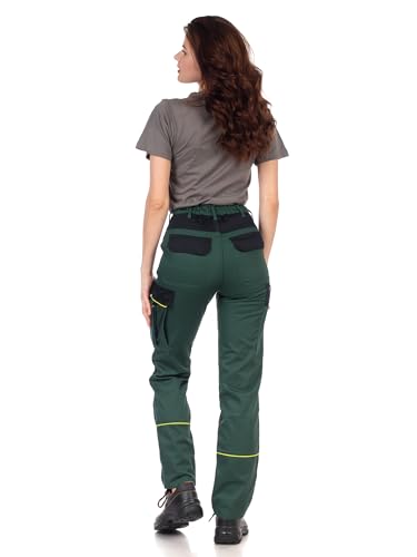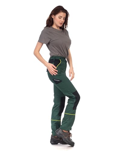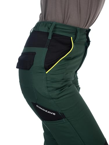 DINOZAVR Fortum Arbeitshose Damen Schmale Passform Cargohose Damen mit Elastischem Bund, 2 Vordertaschen, Cargo Pocket, 2 Gesäßtaschen, Werkzeugtasche, Knieverstärkung, Cordura-Verstärkungen Grün 40