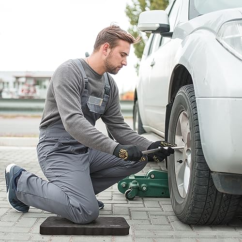 | Features | Multifunktionale Knieschoner: Sie haben nur einen Satz Knie, also behandeln Sie sie gut! Aktivitäten wie Gartenarbeit, Putzen, Kinderbetreuung und Autoreparaturen können Ihre Knie stark beanspruchen. Deshalb bietet Ihnen dieser extra dicke Knieschoner genau den Schutz, den Sie brauchen. Halten Sie Ihre Knie vom schmutzigen oder nassen Boden fern und halten Sie sie gleichzeitig bequem!, Auf Dauer angelegt: Ihre Werkzeuge sollten genauso hart arbeiten wie Sie selbst. Dieser hochdichte Garten-Knieschutz aus EVA-Material verblasst nicht in den rauen Elementen und bietet auch in den kommenden Jahren wertvollen Schutz, ohne sich mit der Zeit zu zersetzen oder zu komprimieren., Zwei Oberflächen für viele Verwendungszwecke: Verwenden Sie die glatte Seite dieser Knieschützer, wenn Sie Ihre Knie wirklich schonen müssen, während die Rückseite eine körnigere Struktur hat, die den Boden festhält, so dass Sie nicht auf unebenen oder rauen Oberflächen herumrutschen können., Überall bequem verwenden: Arbeiten Sie im Freien oder an nassen Orten? Das in diesem Gartenknieschuh verwendete Material verhindert die Wasseraufnahme, so dass er schnell trocknet und reinigt. Er ist außerdem superleicht und verfügt über einen eingebauten Griff, so dass Sie ihn überall hin mitnehmen können, wo die Pflicht ruft!, Perfekte Größe und Dicke: Das 4 cm dicke Kniekissen wurde für die harten, stundenlangen Kniesitzungen entwickelt und bietet Ihnen ein Höchstmaß an Unterstützung und Dämpfung, um die Auswirkungen auf Ihre Knie zu minimieren. Die breite Fläche von 43 x 28 cm bietet Ihnen viel Platz, um sich zu bewegen oder Ihre Position nach Bedarf anzupassen. Ihre Knie waren noch nie so glücklich! |