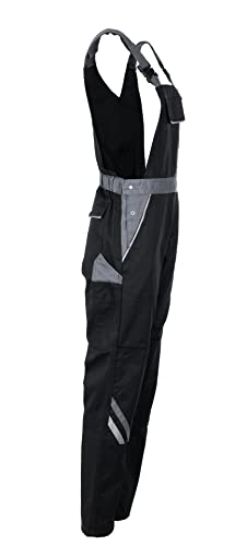 Die Optik der Latzhose ist modern und ansprechend. Durch die Kombination von Schwarz mit Schiefer- und Zinktönen wird nicht nur ein professionelles, sondern auch ein stilvolles Erscheinungsbild erreicht. Die farbigen Applikationen setzen geschmackvolle Akzente, die das Design auflockern.