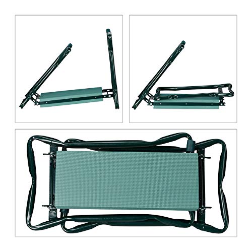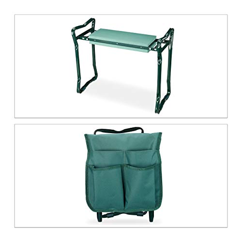 Relaxdays, grün Kniebank, weiches Kniekissen, 2 Taschen, klappbar, Kniehilfe Gartenarbeit, bis 150 kg, HBT 50x60x27,5cm, EVA, Gartenbank