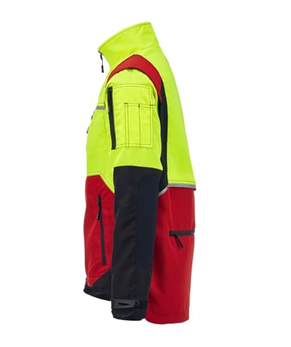 Die KOX Forstjacke in Rot/Gelb ist vielseitig und praktisch – dank abnehmbarer Ärmel kannst du sie auch als Weste tragen. Mit ihrem sportlichen Schnitt und der Signalfarbe garantierst du Sichtbarkeit und Komfort im Wald.