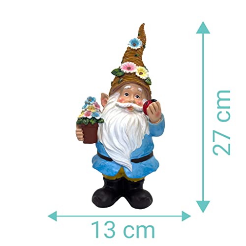 MIJOMA Gartenzwerg Gartengnom GNOME Dwarf Garten Dekoration Gartendeko Wichtel Zwerg für den Garten Wohndekoration Deko für Terasse für Balkon (Blaue Jacke – 27cm)