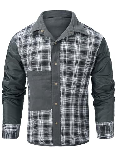 Mr.Stream Herren Karierte Flanellfutter Jacke Hemdjacke Übergangsjacke Leicht Stehkragen Feldjacke Cargo Herbstjacke Snap Western Cowboy Jacken 3268 Grey XL