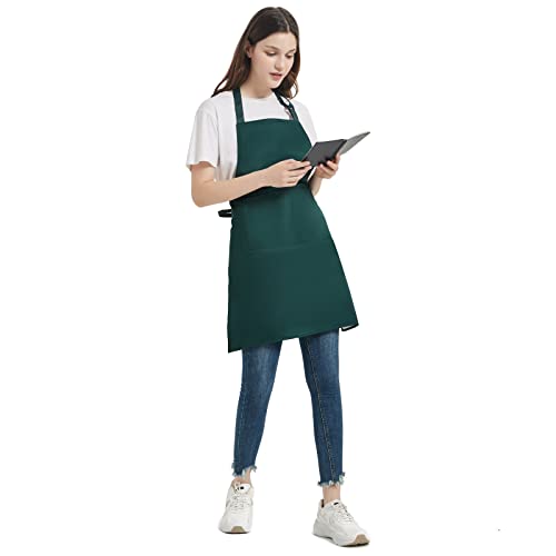 atopo 4 Stück Köche Schürze, Schürze für Männer Frauen, Wasserdichte Schürze mit 2 Taschen, Verstellbarem Nackenband Schürze für Küche Kochen Backen Garten BBQ (Grün