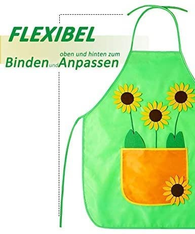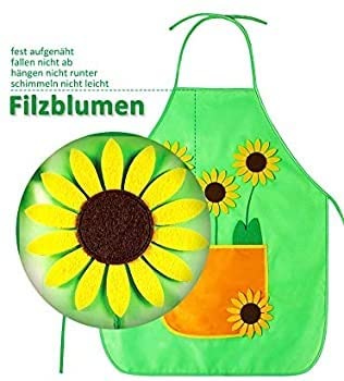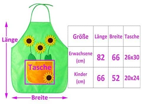 Features | Sonnenblumen-Dekor: Die grüne Schürze ist mit vier filzgelben Sonnenblumen verziert, die fest aufgenäht sind, damit sie nicht herunterfallen oder herunterhängen., Mit Fronttasche: Die gelbe Fronttasche ist groß und praktisch, sie ist belastbar zum Verstauen von Kleinigkeiten wie Spielzeug und Süßigkeiten beim Karnevalsumzug., Größen: 2 Größen erhältlich: 66x52cm, 82x66cm, die farbenfrohe Gärtnerschürze passt sowohl Männern als auch Frauen. Die Schürze ist verstellbar, das Band ist lang genug zum Binden, Sie können die Länge und Breite der Schürze selbst anpassen., Material: Diese Schürze besteht aus Nylon, das ist robust und langlebig. Die Nähte sind fest und sauber am Rand., Vielseitig verwendbar: Die Gärtnerschürze ist ideal für Mottopartys, Kostümpartys, Karneval und Sommerfeste. Sowohl als Karnevals-Outfit als auch als lustige Garten- oder Grillschürze einsetzbar. |