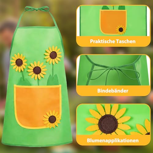 | Features | Sonnenblumen-Dekor: Die grüne Schürze ist mit vier filzgelben Sonnenblumen verziert, die fest aufgenäht sind, damit sie nicht herunterfallen oder herunterhängen., Mit Fronttasche: Die gelbe Fronttasche ist groß und praktisch, sie ist belastbar zum Verstauen von Kleinigkeiten wie Spielzeug und Süßigkeiten beim Karnevalsumzug., Größen: 2 Größen erhältlich: 66x52cm, 82x66cm, die farbenfrohe Gärtnerschürze passt sowohl Männern als auch Frauen. Die Schürze ist verstellbar, das Band ist lang genug zum Binden, Sie können die Länge und Breite der Schürze selbst anpassen., Material: Diese Schürze besteht aus Nylon, das ist robust und langlebig. Die Nähte sind fest und sauber am Rand., Vielseitig verwendbar: Die Gärtnerschürze ist ideal für Mottopartys, Kostümpartys, Karneval und Sommerfeste. Sowohl als Karnevals-Outfit als auch als lustige Garten- oder Grillschürze einsetzbar. |