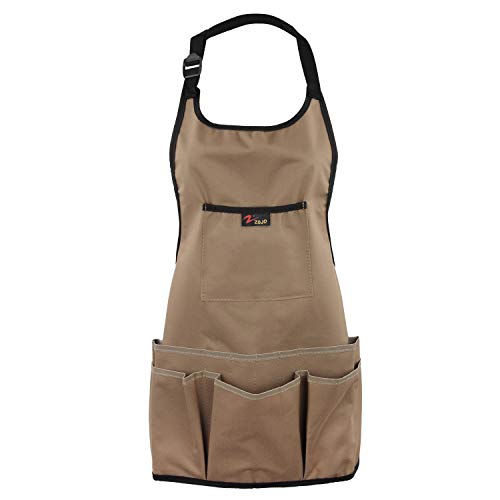 discoball Garten Schürze mit 14 Taschen für Werkzeug wasserdicht verschleißfest Oxford Tuch Multifunktion Braun ca. 61 cm