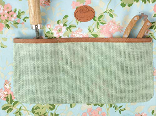 Esschert Design Jute Gartengerätegürtel mit Rosendruck, 46 x 1 x 34 cm, mit Bauchtasche, mit Clip-Verschluss