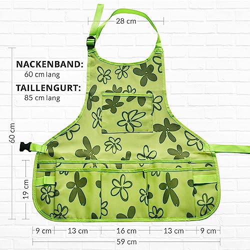 Die Green Thumbz Gartenschürze bietet 14 Taschen für optimale Organisation beim Gärtnern. Sie ist wasserdicht, stylish und schützt deine Kleidung vor Schmutz. Mit verstellbarem Nackenriemen für eine perfekte Passform ist sie dein idealer Gartenbegleiter!
