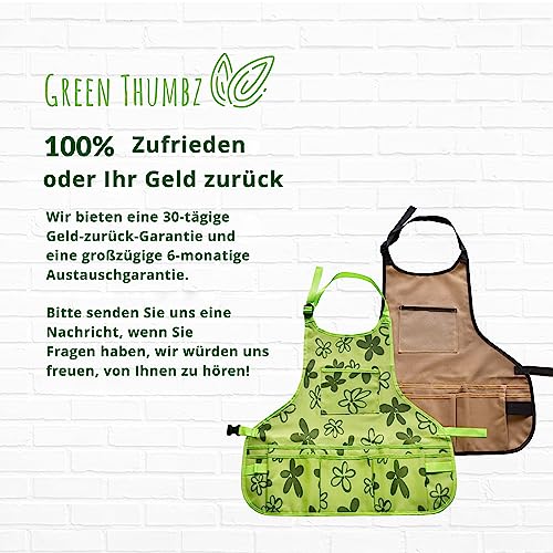 Die Green Thumbz Gartenschürze ist nicht nur funktional, sondern auch stylisch. Das grüne Design macht sie zu einem modischen Accessoire, das du gerne im Garten tragen wirst. Zudem ist die Schürze unisex, sodass sie als tolles Geschenk für Gartenliebhaber jeden Alters eignet.