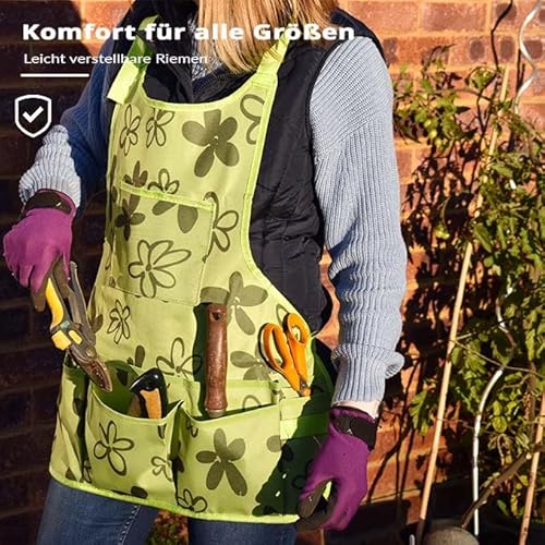 Oxford-Stoff Garten Schürze – 14 Taschen Wasserdichte Gartenschürze für Frauen mit Taschen – Multifunktionale Schürze für Gartenarbeit, Kochen, Putzen und Holzarbeiten – Grüne Gartenschürze