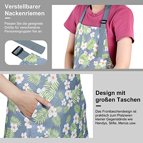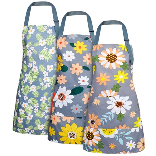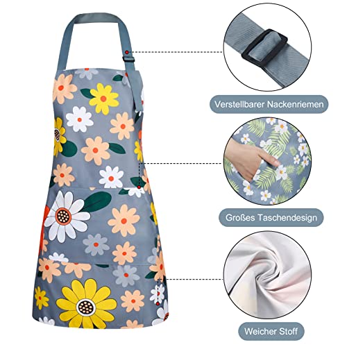 Heyu-Lotus 3 Stück Blumenschürzen mit Tasche, blühende Damenschürzen, wasserdicht, verstellbar, Kochschürzen für Küche, Garten und Salon