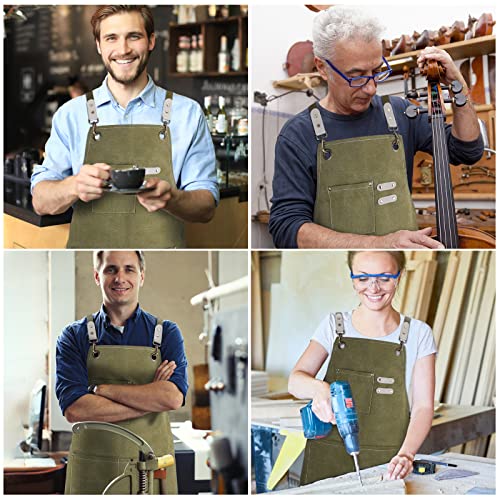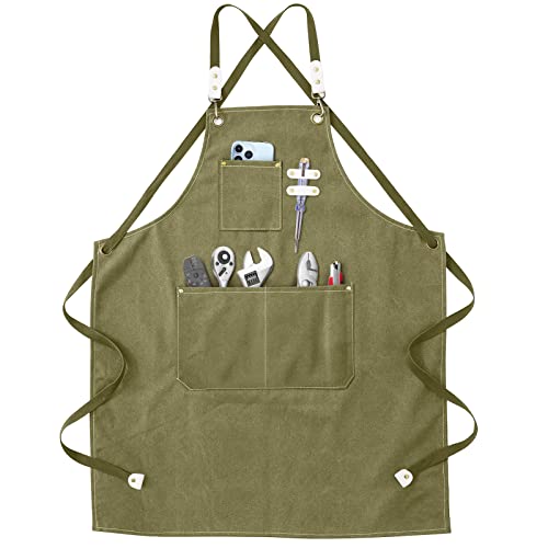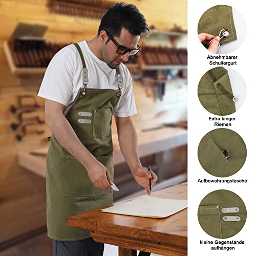 Onezebra Arbeitsschürze – Schweißerschürze mit Werkzeugtaschen Verstellbare Kreuzgurte am Rücken Schutzkleidung Herren & Damen Perfekt für Garten, Küche, Keramik, Werkstatt, Garage Grün 78 * 57cm