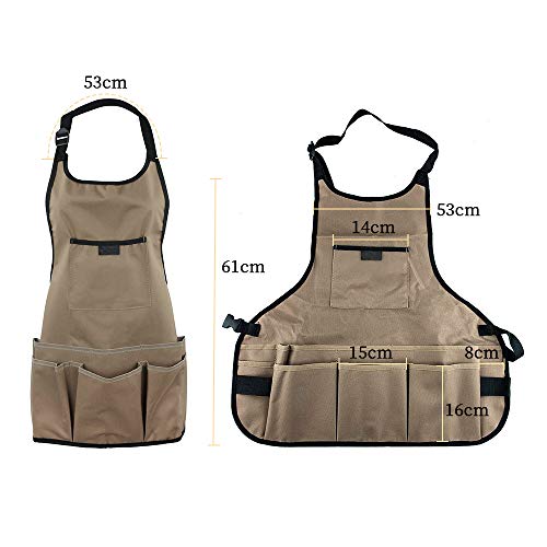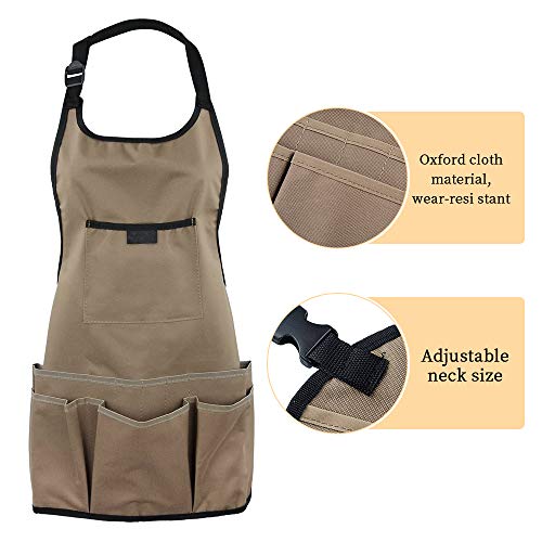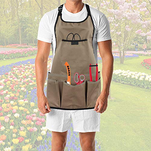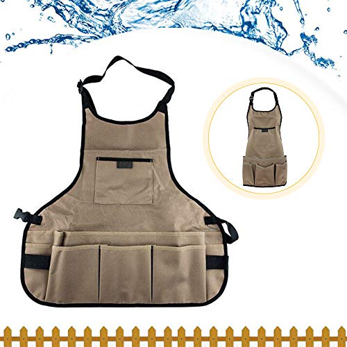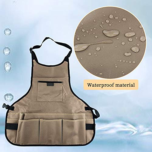 XCOZU Multifunktional Gartenschürze Khaki, Wasserdichte Werkzeugschürze mit Taschen, Verstellbarer Gürtel Verschleißfest Oxford-Stoff Gartenschürze mit Zubehör für Herren und Damen