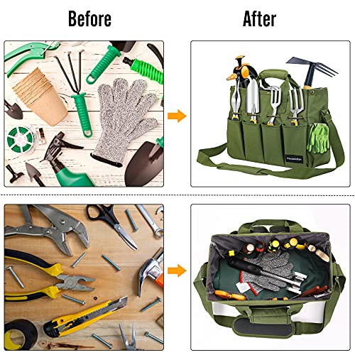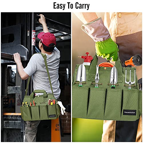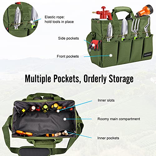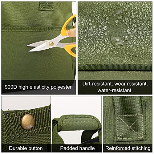 Housolution Garten Werkzeugtasche, 35 x 14 x 28 cm Tragbar Gartentasche Wasserdicht Aufbewahrungstasche mit Mehreren Taschen und verstellbarem Schultergurt Werkzeugbeutel für Haus Garage, Dunkel Grün