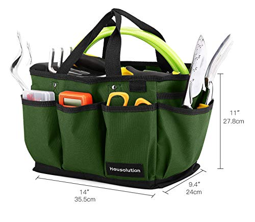 Housolution Garten Werkzeugtasche, Deluxe Garten Werkzeug Aufbewahrungstasche und Gartengerätetasche mit Kleinen Taschen, Verschleißfest und Wiederverwendbar, 14 Zoll, Dunkelgrün