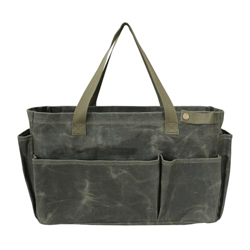 Garten Werkzeugtasche, Hand-Werkzeug-Aufbewahrungstasche, gewachstem Segeltuch Garten Werkzeug Tragetasche, – mit Außentaschen – für Gärtner Elektriker Handwerker Schreiner | Grün | 46x18x28cm
