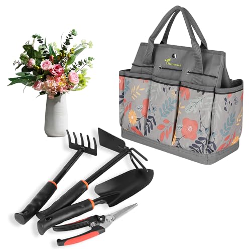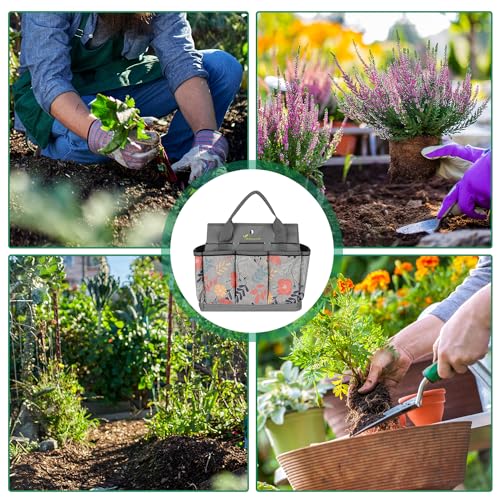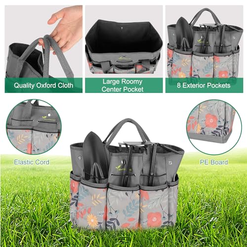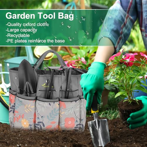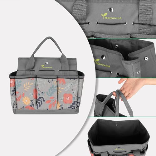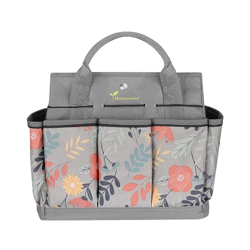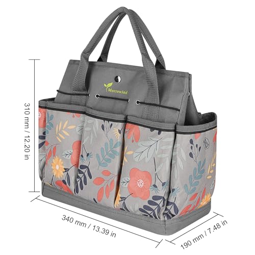 MORROWIND Garten Werkzeugtasche, Oxford Stoff Garten-Einkaufstasche Garten Werkzeug Aufbewahrungstasche Werkzeugorganisator mit 8 Außentaschen für Gartenarbeiten, Floral Rot