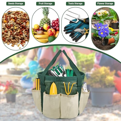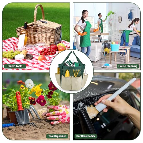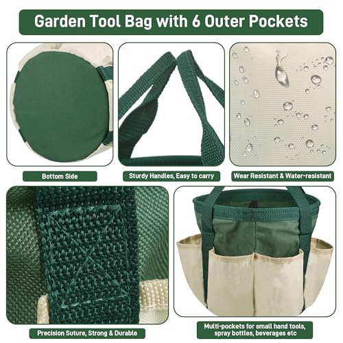 Garten Werkzeugtasche, Gartentasche mit 6 Taschen für Utensilien, 7.5″x8″ Gartengerätetasche, Aufbewahrungstasche für Gartengeräte, Oxford Stoff Garten Tragetasche für Gärtnerinnen und Gärtner